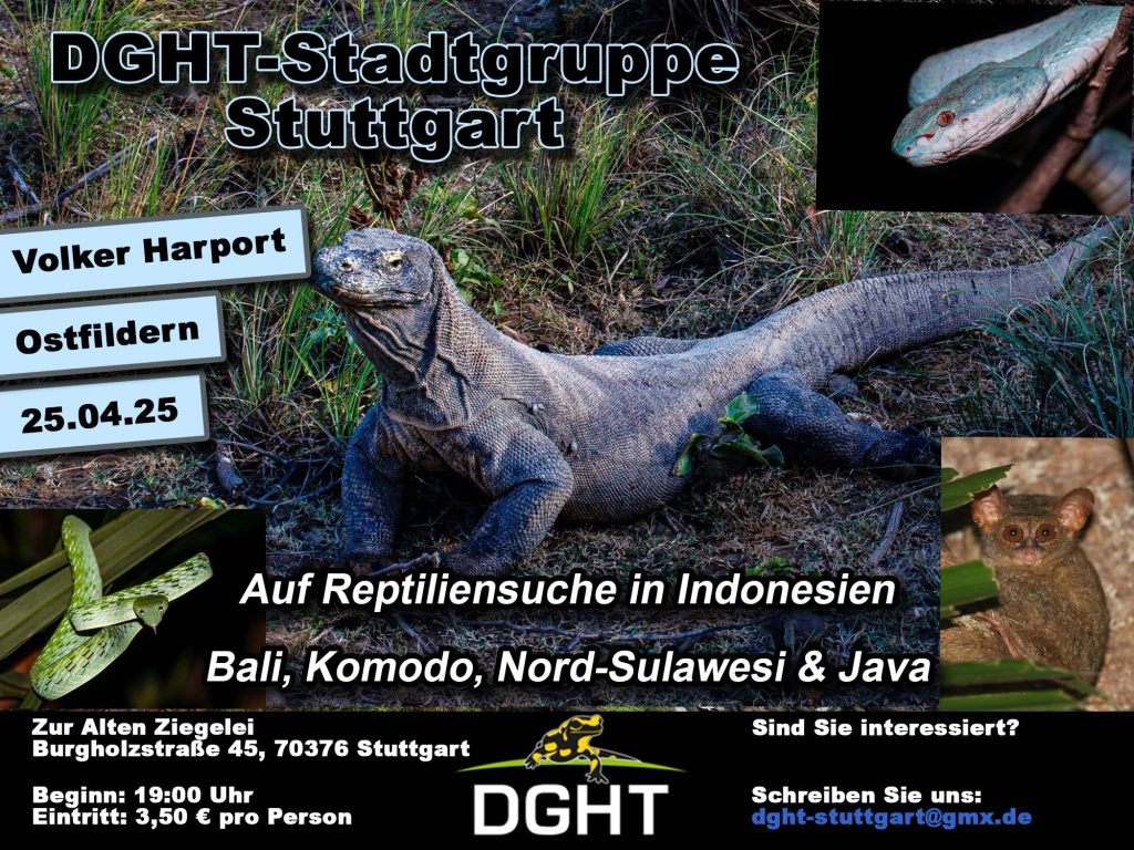 am Samstag, 25.04.2026 freuen wir uns sehr auf Volker Harport aus Ostfildern mit seinem spannenden Vortrag „Auf Reptiliensuche in Indonesien – Bali, Komodo, Nord-Sulawesi & Java““.